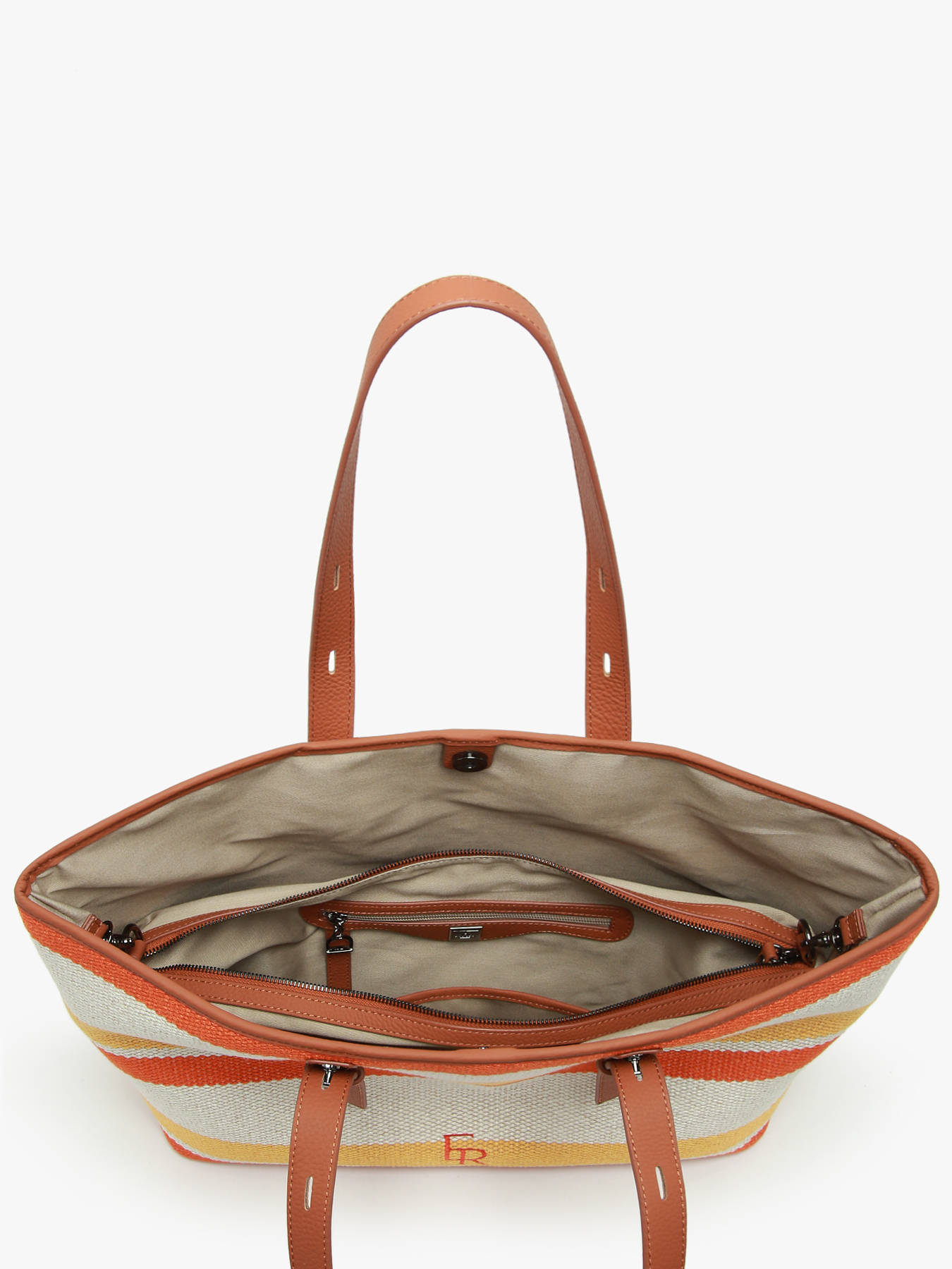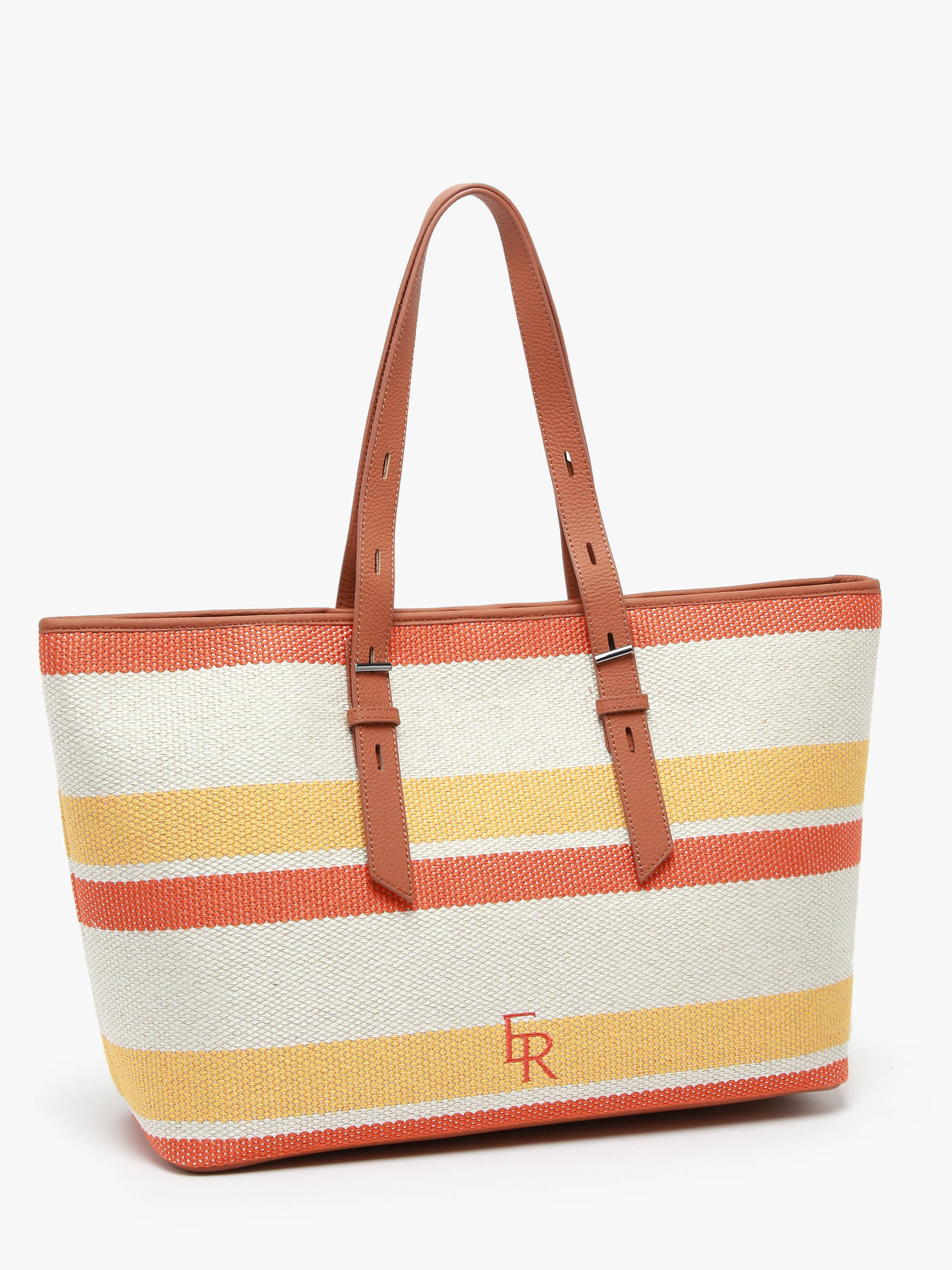 Ce sac porté épaule ETRIER de la ligne CAVALIER TOILE, en coton garni cuir, est un cabas pratique et élégant. Fermeture pression et aimant. Avec une anse de 23 cm, il offre un intérieur fonctionnel avec poches et compartiments. Logo ETR en relief pour une touche de raffinement. Il se décline en toile colorée et tendance pour l'été mais aussi en version unie façon lin.